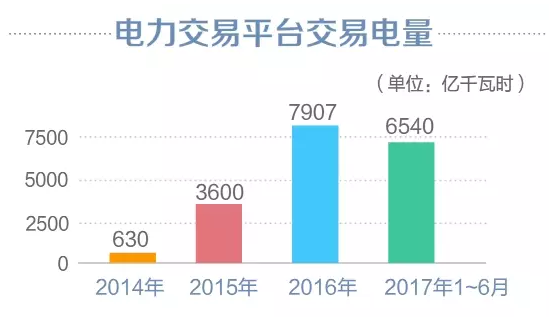 截至2017年6月,电力交易平台已累计开展各类交易2417次,成交电量18677亿千瓦时;参与市场主体近20万家次,其中发电企业16万家次、电力用户3.94万家次、售电公司600家次;平台日均访问量8200余次。
