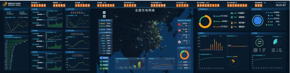 国家电网公司目前已建设充电站5526座、充电桩4.5万个,建成六纵六横两环‛高速快充网络,覆盖全国26个省、273个城市。2017年年内,将新建2.6万个充电桩,年内建成九纵九横两环‛高速公路快充网络。十三五期间,在公司经营区域将建成充电站1万座、充电桩12万个,满足我国电动汽车迅猛发展需要。采用大数据挖掘和可视化展现技术,建成车联网运营监控系统,实现充电运营、运维检修、客户服务的7×24小时实时监控。
