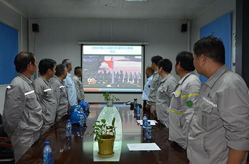 “金戈铁马,气吞万里如虎。”上午8点10分,在项目部第二会议室召开了纪念建军90周年座谈会,共同观看了宏伟、盛大的《庆祝中国人民解放军建军90周年阅兵》视频。当举行升旗仪式时,参会的复退转军人纷纷站起,如参加阅兵的战士,五星红旗在斗志昂扬的歌声中升起。一列列军队整齐有序,直升机、坦克、步战车应接不暇,让人慷慨激昂,踌躇满志,为祖国繁荣昌盛感到自豪、骄傲。