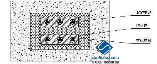 (4)凡穿越楼板的电缆孔、洞都应采用无(有)机防火堵料,洞口用12mm防火板覆盖,用膨胀螺栓固定,在出线处用有机堵料做线脚成几何图形。防火隔板或阻火包进行封堵,其封堵厚度不应小于100mm,宜与楼板厚度齐平。