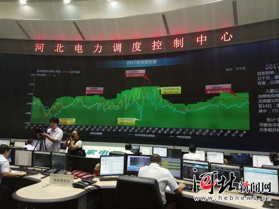 国网河北省电力公司始终坚持新能源优先调度管理,2017年1至7月河北南网实现新能源电力全消纳。图为河北电力调度控制中心。