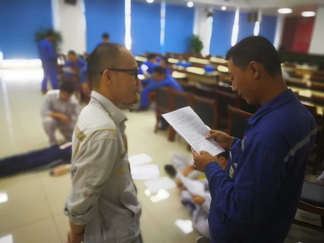本次比赛分理论知识问答与实际操作演练两个环节。理论知识包括安全知识试卷的考试;实际操作演练分别进行心肺复苏法、中暑急救、人身伤害、窒息急救等项目。伴随着一幕幕的抢救画面,选手们很快进入急救状态,他们在"模拟人"面前呼救、评估、通气、按压.......表现的沉着冷静、动作娴熟。最后,由于检修公司钦州项目部参赛者在此次比赛过程中表现突出,获得一等奖一名,二等奖三名较好成绩。