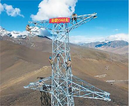 8月22日,197号铁塔最后一根塔材在西藏自治区山南市洛扎县蒙达村境内、海拔5548米的蒙达拉山上空组装完成,标志着国家电网"930"重点工程110千伏浪卡子-洛扎输电线路工程实现超高海拔组装。目前该工程已进入全面铁塔组装和部分架线施工阶段,计划于2018年9月20日建成投运