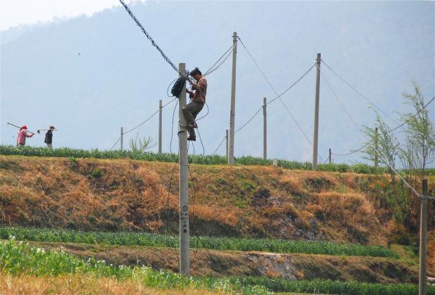电力工人在云南乡村作业。2015年,中国宣布解决了全国最后273万无电人口的用电问题。图片来源:Morgann