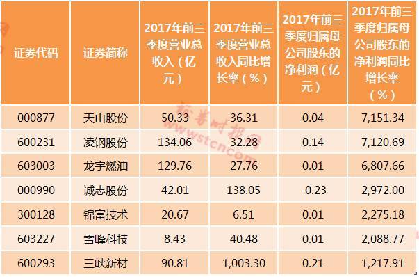除了智飞生物外,启明信息、海德股份、甘肃电投、方大炭素、金刚玻璃、科恒股份、恒泰艾普、浙江富润等公司预计净利润增速也居于市场前列。不过上述企业增速较高的一个重要原因是去年基数不太高,去年前三季度净利润均未超过1亿元。