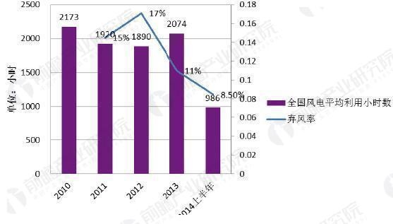 中国风电年平均利用小时数和弃风率 资料来源:《前瞻产业研究院风电行业投资分析报告》
