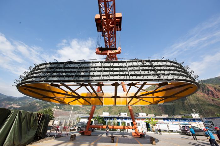 此次抵达施工现场的是9号机组1号尾水肘管,直径11.6米,重量约16吨,是白鹤滩水电站百万机组第一件交货的埋件,也是第一件交货的机组本体组件,标志着白鹤滩水电站百万级精品机组制造进入新的阶段。