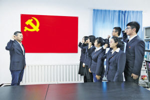 拥抱新时代 担当新使命――公司系统学习贯彻党的十九大精神综述 新疆昌吉供电公司经济技术研究所员工重温入党誓词,不忘初心、继续前进。 马占财 摄 10月30日,上海金山供电公司以多种形式组织开展学习宣传活动,迅速掀起学习宣传贯彻十九大精神的热潮