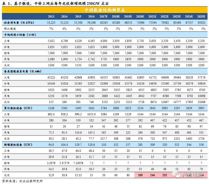 光伏板块:发电侧平价上网后,能源平衡表约束下光伏年均新增规模能到多少?