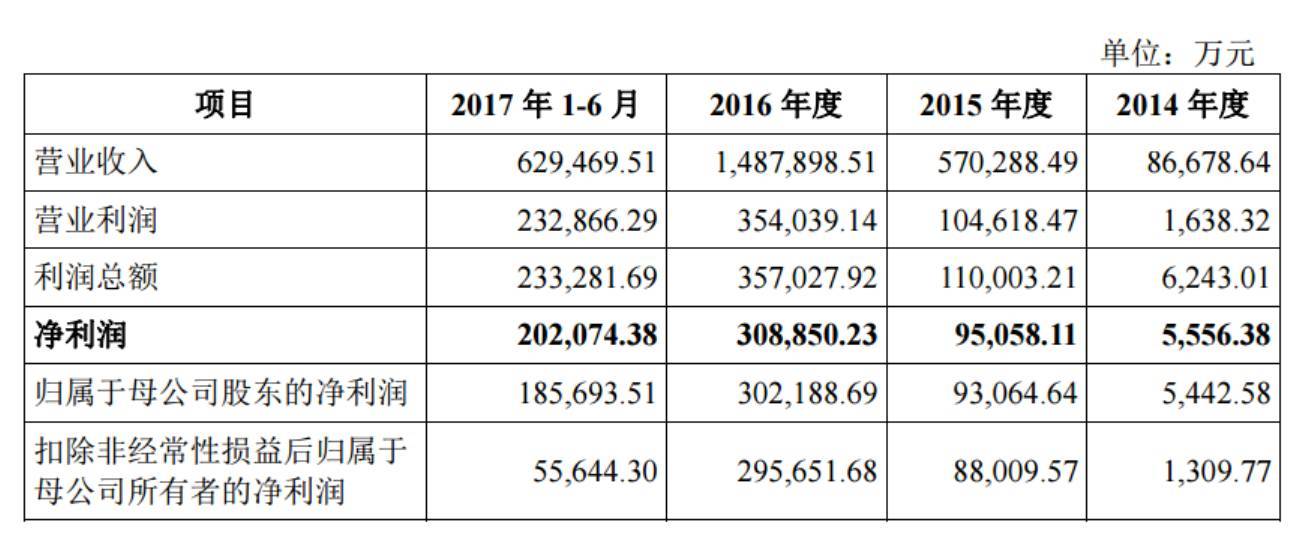2015年和2016年公司营业收入增长率分别达到557.93%和160.90%,2017年 1-6月营业收入较2016年同期增长33.00%,主要是因为新能源汽车行业快速发展, 国内动力电池市场需求不断增长,公司作为行业内技术领先的动力电池供应商,具有较强竞争优势,随着产能逐渐释放,产销量持续增长。