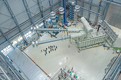 西门子凭借多年的高压直流变压器经验,进一步开发了这种变压器的所有关键部件,从而在高压直流输电技术上达到了一个新的传输水平。由于变压器的极端尺寸(LxWxH:37.5 m x 12.0 m x 14.5 m),制造和测试该产品的工作流程非常具有挑战性。尽管如此,±1,100千伏的原型能够通过功能,排放和负载水平的每一个测试。