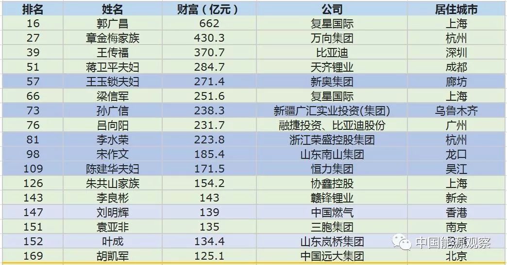 以下是我们整理的跟能源相关的上榜富豪,快来看看有没有你家老板: