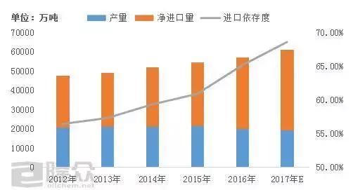 *预计2017年中国原油进口依存度将突破68%,并历史上首次逼近70%。