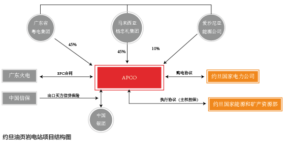 瞿栋:约旦国内90%以上的发电量都来自于燃油、燃气电站。由于约旦能源资源匮乏,90%以上的能源供应需从周边国家进口。但约旦油页岩储量丰富,只是受限于资金和技术,长期以来未能得到有效的开发和利用。2011年以来,中东局势动荡导致约旦燃料供应数次中断。出于平衡电源结构、摆脱能源对外依赖、保证电力供应安全的需要,约旦政府希望吸引国际投资者开发其丰富的油页岩资源以建设大型油页岩电站。2011年,约旦政府与爱沙尼亚能源公司签订协议,引进爱沙尼亚油页岩发电技术,在约旦阿塔拉特油页岩区建设油页岩电站,设计容量为两台27.7万千瓦循环流化床发电机组,建成后能满足约旦国内10%—15%的用电需求。为此,爱沙尼亚能源公司联合马来西亚杨忠礼集团、约旦近东投资公司成立了阿塔拉特电力公司(APCO),三方占股比例分别为65%、30%和5%。