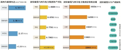 从能源行业整体来看,国家能投的资产超1.8万亿元,成为仅次于中石油、国家电网公司和中石化的第四大能源央企。从发电行业看,国家能投的电力总装机量超2.2亿千瓦,远超目前位列第一的华能集团,跃居国内最大发电企业。