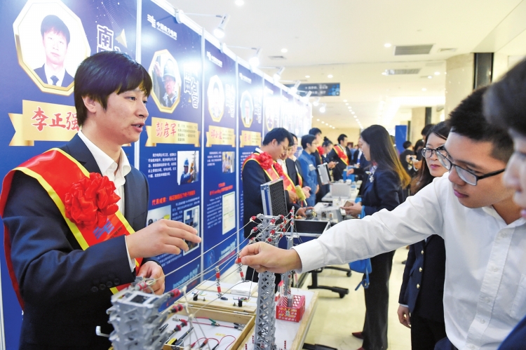 南方电网公司职工创新工作现场推进会职创成果展现场人头涌动,172个职创成果悉数亮相。南网报记者 李志杰 通讯员 刘安琪 摄