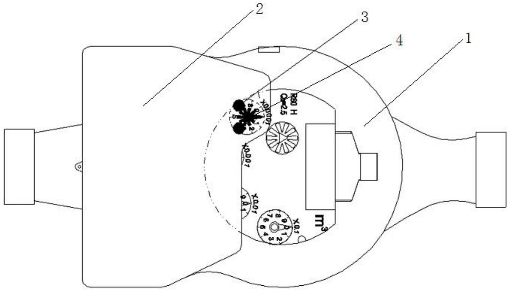 现如今的采用的方式是在原有的老式水表的指针上加上小磁铁,并在水表内部加上一个磁敏传感器与外部采集电路板,通过导线将传感器与外部采集电路板相联,其通过检测指针转动的圈数来达到计量用水量的目的。这种水表由于上述电路元件是设置在水表内部的,其需要作一定的防水处理,无疑的增加了水表的报价;且电路板部分和传感器部分为易损件,维修时需要打开整个水表进行修理,甚至需要将水表完全更换,这样一来浪费人力物力,二来也浪费了材料,且其信号传递是通过磁场,这样就存在可能被外部磁场干扰的情况,这时的传感器都会检测到恒定磁信号,传感器就无法计数。