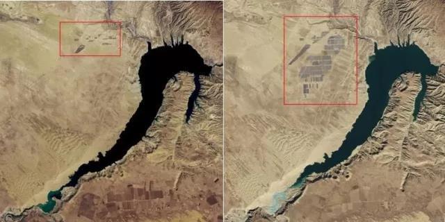 下图片来自美国国家航空航天局(NASA)记录了龙羊峡电站从2013年至今的巨大变化。