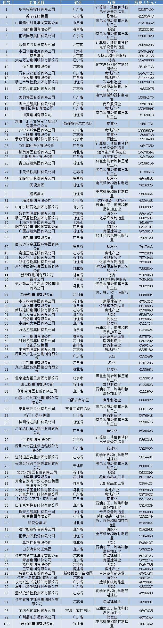 8月24日,中国民营企业500强榜单在济南发布: 华为投资控股有限公司获得冠军,这也是其连续两年在榜单中登顶,苏宁控股集团排名第二。