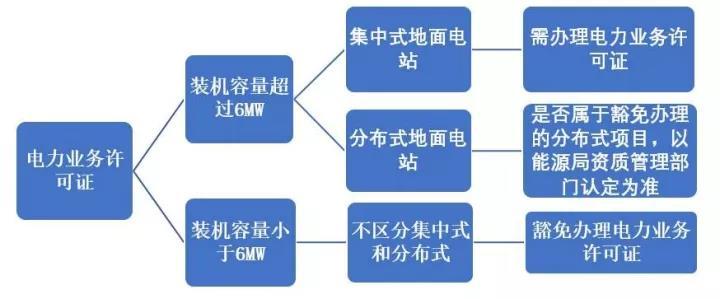 要解答该问题,首先我们看看国家能源局2014年4月9日发布的《国家能源局关于明确电力业务许可管理有关事项的通知》(国能资质〔2014〕151号)第一条:“简化发电类电力业务许可证申请有关事项规定:豁免以下发电业务的电力业务许可:1.经能源主管部门以备案(核准)等方式明确的分布式发电项目……3.项目装机容量6MW(不含)以下的太阳能、风能、生物质能、海洋能、地热能等新能源发电项目。”