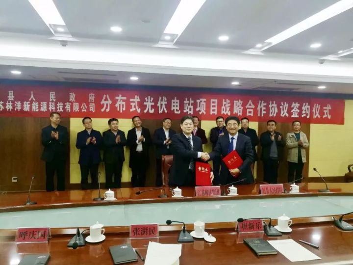 基于前期双方良好的合作和信任关系,在国家能源局下发《关于开展分布式发电市场化交易试点的通知》的政策背景下,由山东林洋新能源科技有限公司董事长林少武与山东省冠县人民政府副县长张澍民代表签署了分布式光伏电站项目战略合作协议。