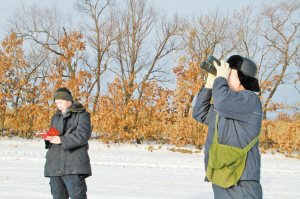 张福泰和张鑫巡视线路。 认真记录