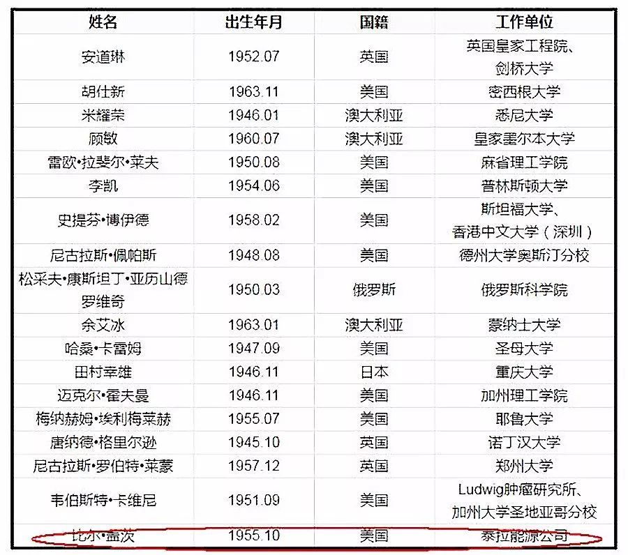 外籍专家名单中,最后一位尤其瞩目:从名字上看,比尔·盖茨是微软公司的创始人,但从工作单位上看,泰拉能源公司又是一个相对陌生的名字……到底是外籍院士中迎来了一位“重磅大牌”,还是仅仅添了一位重名的专家?