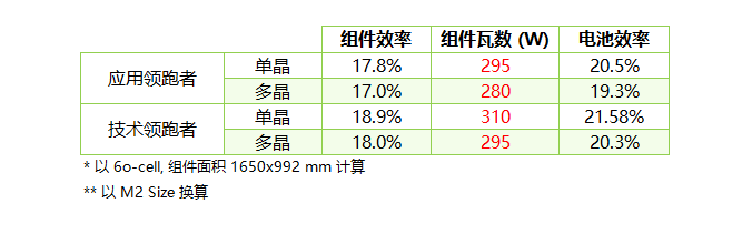 领跑者计划实际上仅制定组件瓦数的门坎,因此业者除了在电池技术上提升外,亦可透过半切、双面电池等技术来撑高瓦数表现。