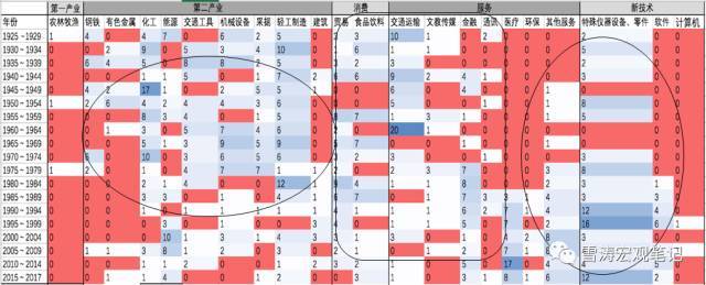 1920-1950年的工业1.0(大基建重工业),1950-1970年的工业2.0(工业自动化),1980-至今的工业3.0(电子信息技术),未来的大数据+人工智能的工业4.0(数据信息技术),都是当时的前沿技术和新经济产业。