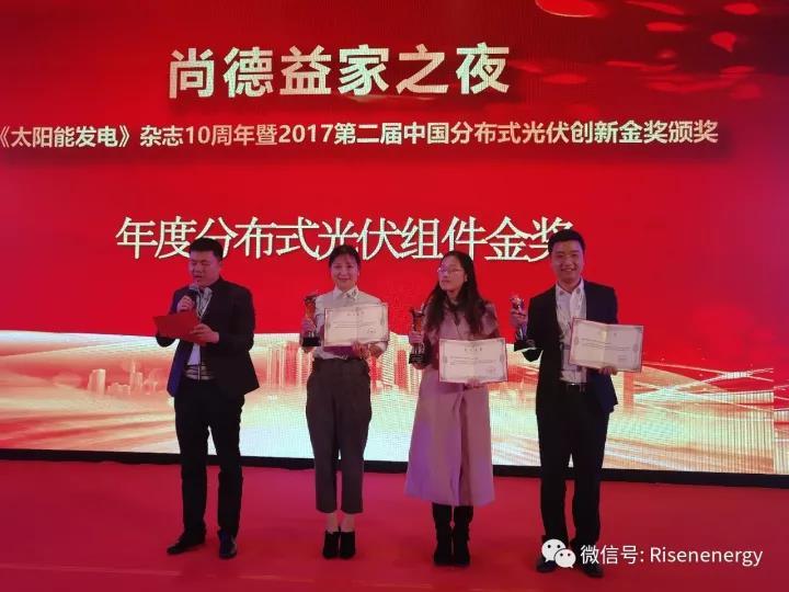 12 月 2 日,“2017 第二届中国分布式光伏品质建设高峰论坛”在京召开。来自电力、工商业、 建筑及城乡能源领域的权威专家,围绕电力改革发展趋势、分布式光伏融入未来能源体系和市场化发展所面临的机遇与挑战展开了深入探讨。论坛同期,第二届全国分布式光伏创新金奖颁奖典礼也盛大举行。东方日升则凭借多年来在产业创新技术研发方面的深厚积淀荣获“2017年度分布式光伏组件金奖”,成为行业关注焦点。