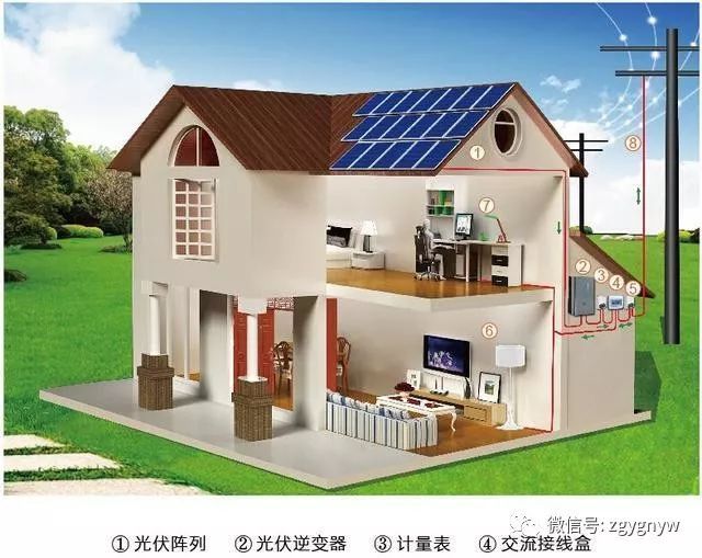 分布式光伏发电的主要结构有太阳能光伏组件(或方阵)、光伏控制器、逆变器、支架、线缆以及测试、监控、防护等附属设施。家庭并网光伏系统中还包含一个重要的设备:双向电表。双向电表是由电网公司免费提供给用户的,直接连接到国家电网中,会计算出用户每月的用电量和光伏系统所发的电量。
