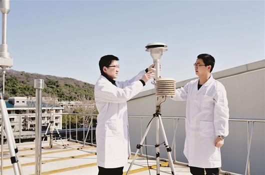 12月5日上午,记者来到位于湖北武昌区八一路的湖北省环境监测中心站大气复合污染自动监控预警中心,工作人员首先带领记者来到了6楼楼顶的空气质量监测站。