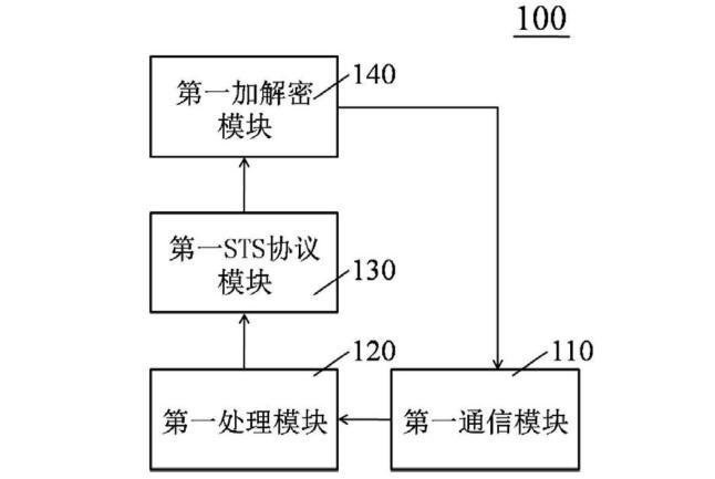 具体地,第一加解密模块(140)通过生成树算法进行加解密处理。可选地,基于STS的预付费系统还包括:第二通信模块(210)、第二加解密模块(240)、第二STS协议模块(230)以及第二处理模块(220);第二通信模块(210)用于接收令牌Token;第二加解密模块(240)用于将令牌Token进行解密,获得令牌Token明文;第二STS协议模块(230)用于将令牌Token明文转化为对应的电表数据;第二处理模块(220)用于获得电表数据,并进行数据处理。可选地,基于STS的预付费系统还包括对令牌Token明文进行检验的验证模块。具体地,第二处理模块(220)根据剩余电量或剩余金额以及计费方式,计算对应的剩余金额或剩余电量。