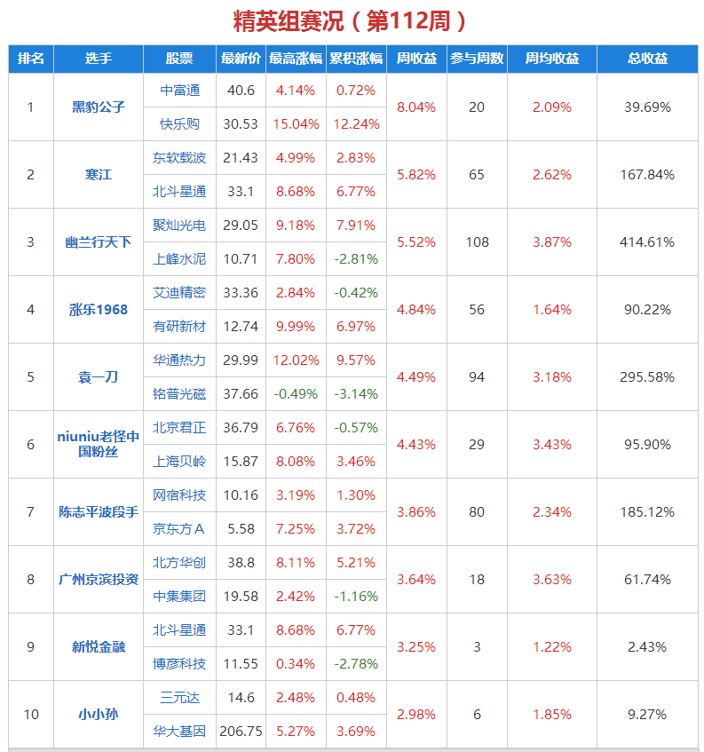 精英组前三:黑豹公子、寒江、幽兰行天下