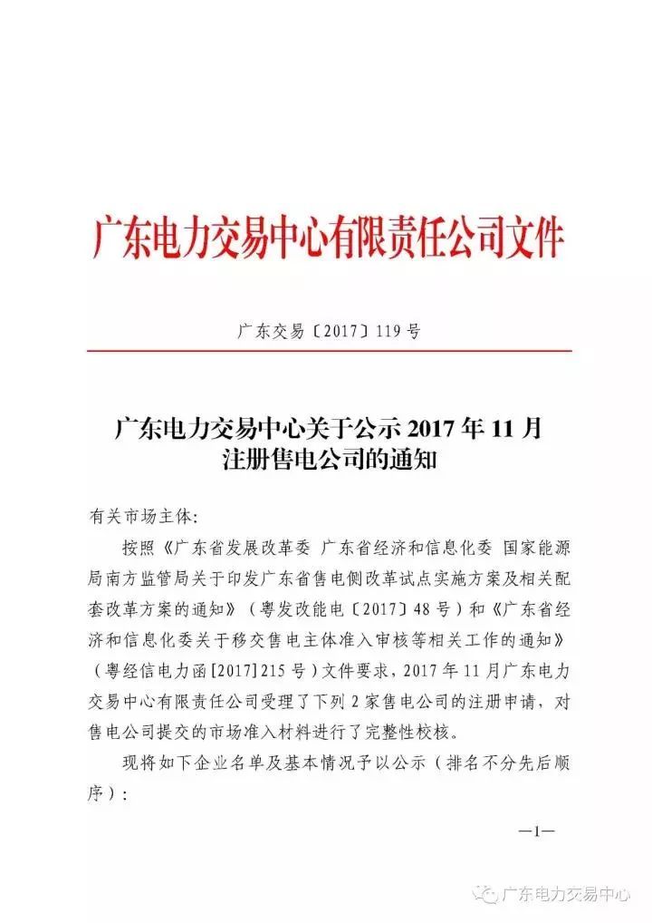 为做好售电公司的准入审核等相关工作,广东电力交易中心现对11月注册申请的2家售电公司进行公示,公示正文如下: