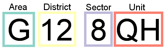 图|英国邮编拆解示意:每一部分分别对应地址里的不同信息