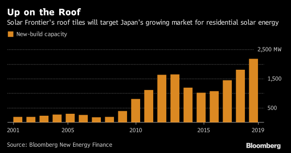 日本太阳能电池板制造商Solar Frontier K.K.计划出售屋顶和墙壁材料的太阳能电池板,并采取特斯拉公司的建筑技术,可以在最小的空间发电。