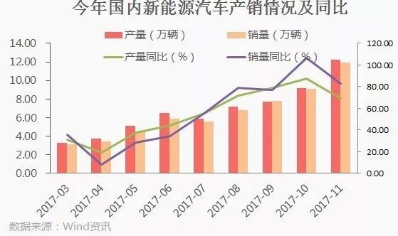 在17年补贴政策重新规范调整和市场需求逐步回归正常情况下,各厂家努力实现新能源车的新品布局突破,时值年底旺季,新能源车产销呈现走强的特征。