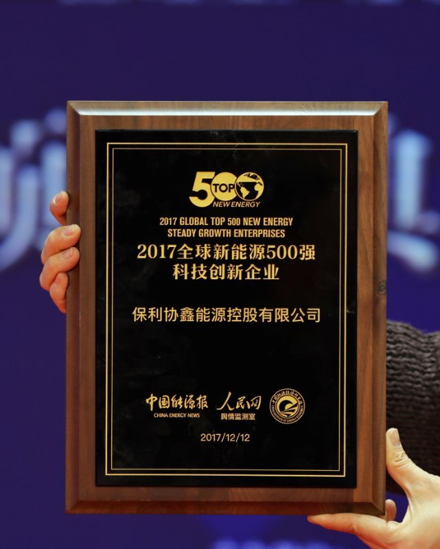 12月12日,由中国能源报、人民网舆情监测室、中国能源经济研究院联办的“‘一带一路’国际能源高峰论坛暨第七届全球新能源企业500强峰会”在人民日报社召开,保利协鑫荣获“2017全球新能源500强科技创新企业”奖项。