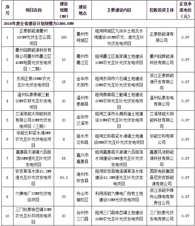 原标题:共计1386.6MW 浙江调整2016年普通地面光伏电站建设指标 根据《国家发展改革委 国家能源局关于完善光伏发电规模管理和实行竞争方式配置项目的指导意见》(发改能源〔2016〕1163号)、《国家能源局关于下达2016年光伏发电建设实施方案的通知》(国能新能〔2016〕166号)、《国家能源局关于调整2016年光伏发电建设规模有关问题的通知》(国能新能2016〔383〕号)等有关文件要求,我委于2017年10月31日至11月10日公开征求全省2016年度普通地面光伏电站建