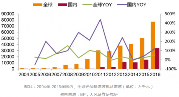 自2013年复苏,光伏国内、全球装机量年终数据超过预期已经多次,一方面是国内巨大的终端市场迅速崛起;另一方面是光伏全球市场正在去中心化,成熟稳健、快速增长、新兴潜力结合的多元化市场正在形成,光伏政策驱动的大起大落减少,真正向高成长性行业切换。