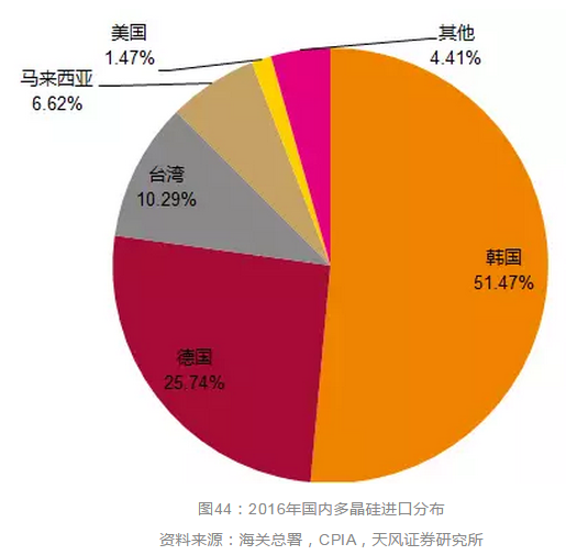 除了国内多晶硅需求空间之外,进口多晶硅替代也能释放一部分空间。