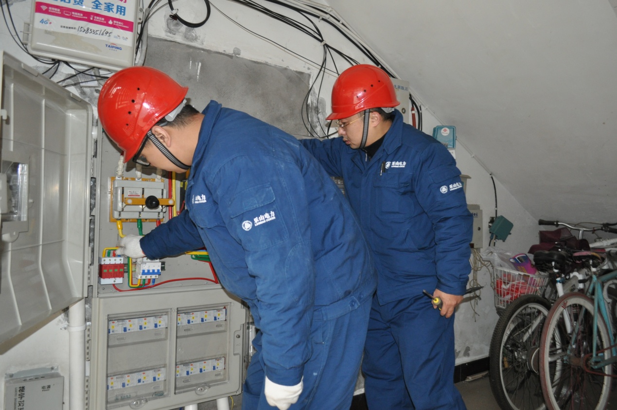 建管人员检查智能电表改造质量。