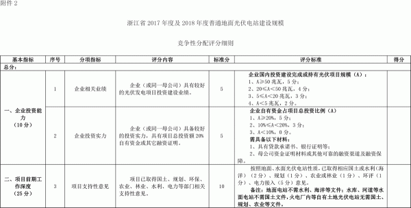 2. 浙江省2017年度及2018年度普通地面光伏电站建设规模竞争性分配评分细则