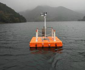 气象站建在相对开阔的湖面上,水深近30米,是浙江宁波市首个深水湖面自动气象站。气象站的水上漂浮箱搭载各类气象观测设备,通过四角系高强度缆绳和2吨水泥块以及安装方位仪加软件编程的方式,解决了测站漂移及风向定位的难题。