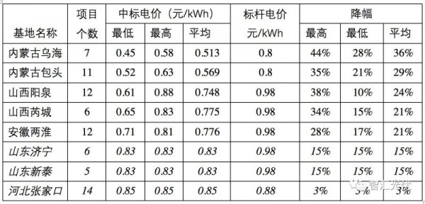 值得注意的是,2017年的领跑者中标电价比当时的标杆电价下降了15%~44%,各基地平均下降15%~36%(不含河北奥运走廊)。