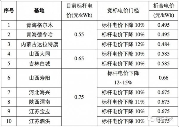 2018年的领跑者基地中,各基地都提出竞标电价至少要低于标杆电价的百分比,如下表所示。