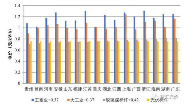 工商业电价+0.37比0.75元/kWh高0.33~0.50元/kWh;