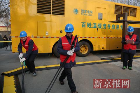 国网北京电力运维检修部副主任林涛介绍说,“此次模拟了渣土车撞电杆导致煤改电村发生停电故障,我们立即进行应急供电、设备抢修等工作。刚才,我们调派了发电车,为煤改电村迅速恢复供电,保障居民温暖过冬。”