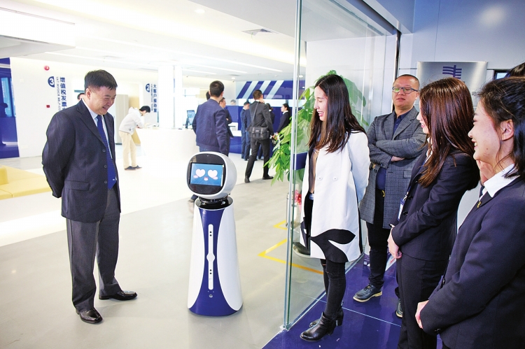 机器人大堂经理“小智”引导客户办理业务,深受客户喜爱。杨晶晶 摄